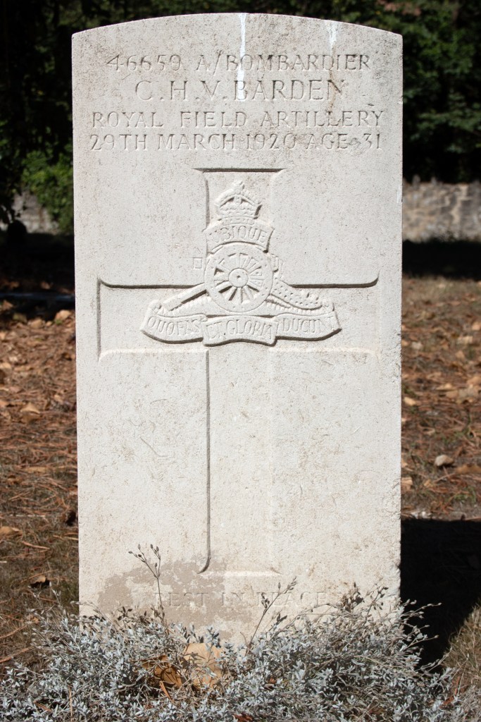 Absent from the 1911 census, what is known is that Charles’ father died in 1914 and that in August that year, Charles enlisted in the Royal Field Artillery. Driver Barden was sent to France within weeks of the declaration of war and, during the conflict he rose to the rank of Acting Bombardier.