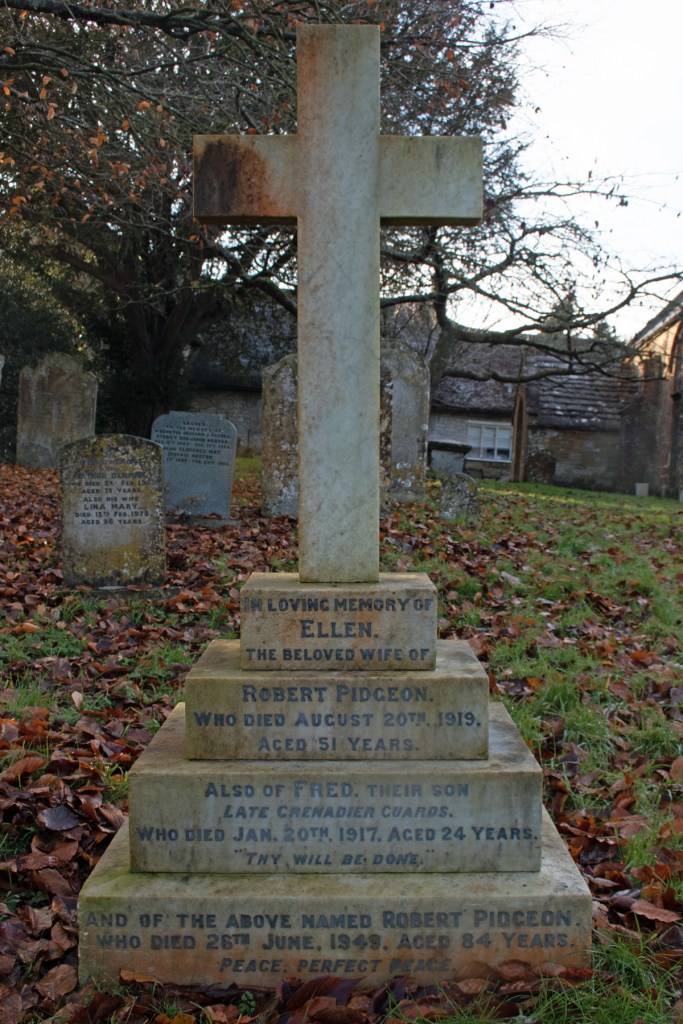 Fred Pidgeon was brought back to Somerset for burial. He was laid to rest in the family plot in the peaceful graveyard of All Saints’ Church, in his home village of Lopen.