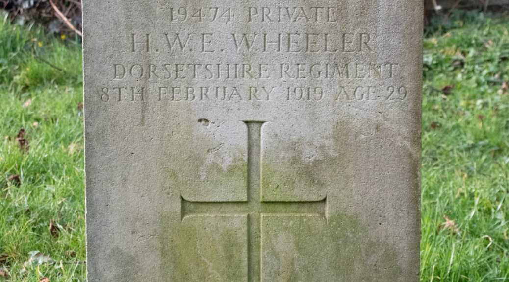 Private Wheeler’s trail can be picked up again after the end of the war, presumably when he had returned to Britain prior to being demobbed. Sadly, however, he was admitted to a military hospital in Wilton, Wiltshire, suffering from ‘disease’. He passed away on 8th February 1919, at the age of 29 years old.