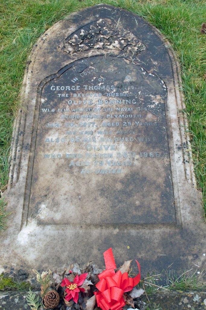 Stoker 2nd Class Bonning was sent to HMS Vivid, the Royal Naval Dockyard in Devonport, for training, and it was here that he contracted a chill. Tragically, this developed into pneumonia, and he died in the barracks on 20th January 1917. He was 29 years of age, and had been in service for just 37 days.