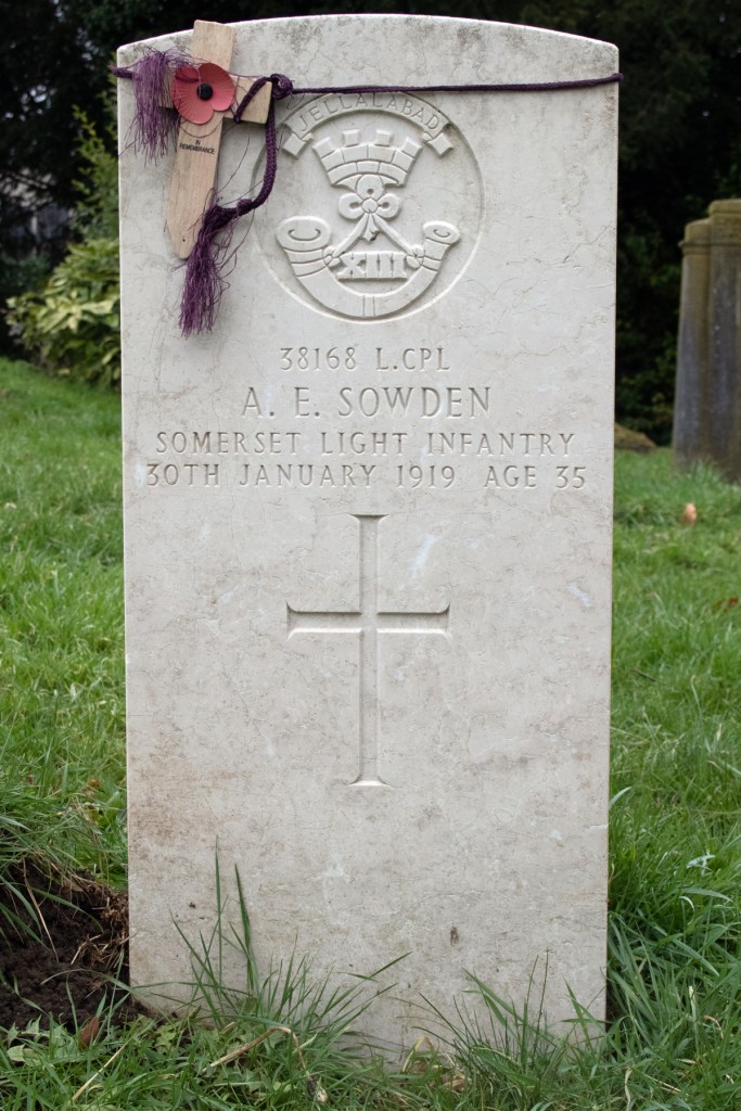 With the end of the conflict, the Empire’s forces were slowly demobbed. While he was waiting to be stood down, Lance Corporal Sowden fell ill. He developed influenza and septic pneumonia, and the combination was to prove fatal. He passed away on 30th January 1919, at the age of 35 years old.