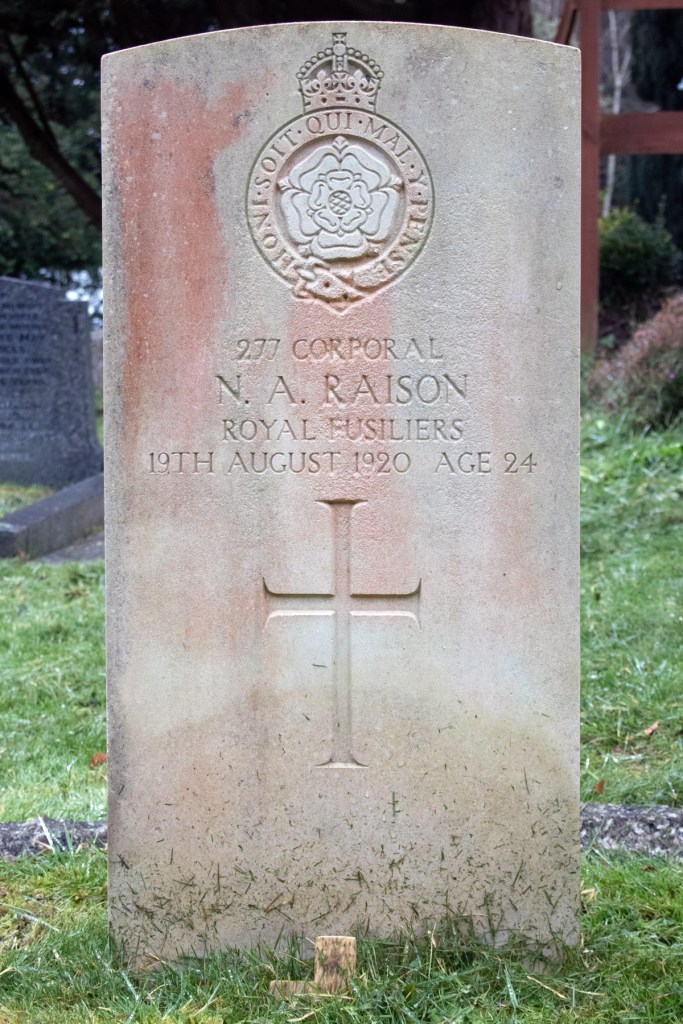 Corporal Austin Neal Raison died on 19th August 1920. He was laid to rest in the Townsend Cemetery, Crewkerne, within sight of the family home.