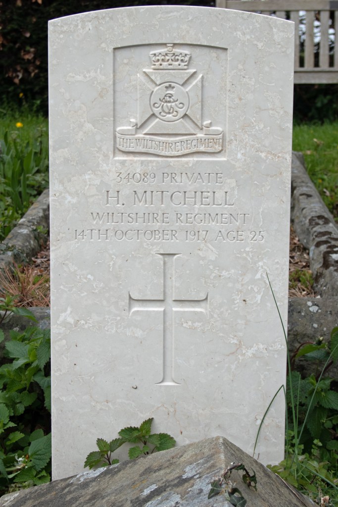Full details of Henry’s military service are lost to time, but from his gravestone it is clear that he enlisted in the Wiltshire Regiment as a Private. From other documents it is possible to determine that he joined up by April 1917, and that he did not serve overseas. Instead, while his battalion – the 1st – fought at the Somme, Messines and Ypres, Private Mitchell was assigned to the regiment’s depot.