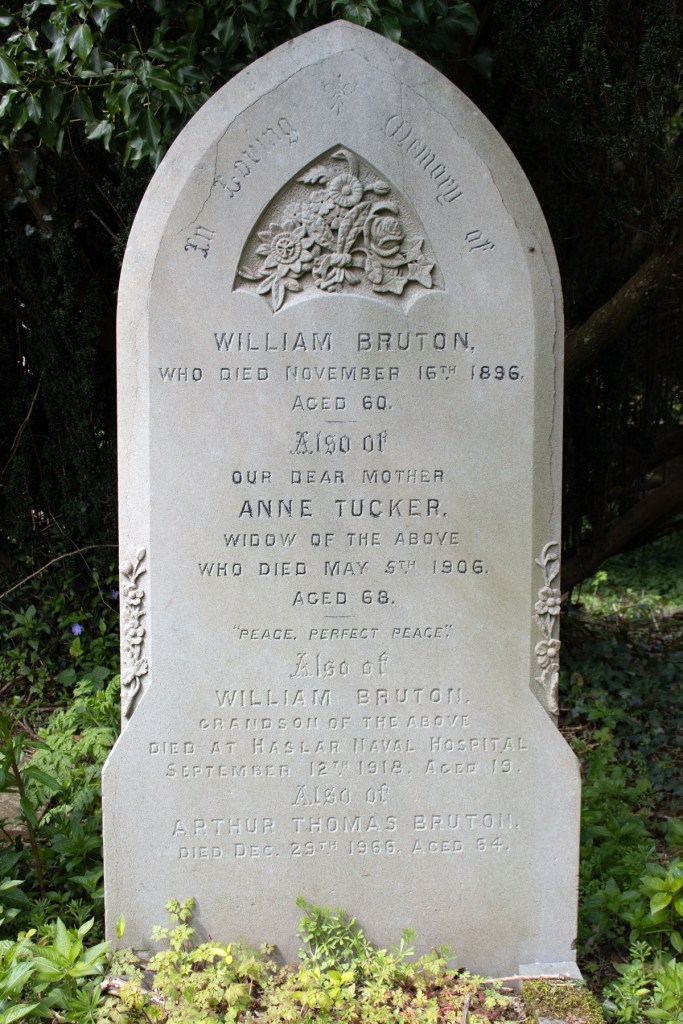 William Bruton was brought back to Somerset for burial. He was laid to rest in the family plot in Lansdown Cemetery, overlooking the city of his birth.