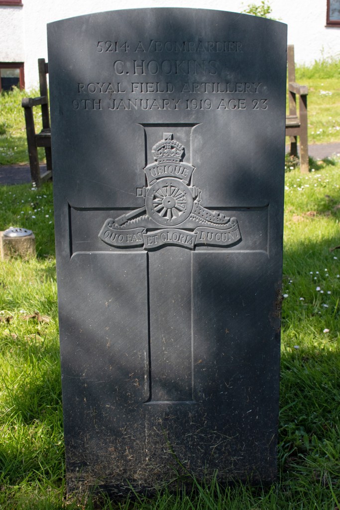 Acting Bombardier Hookins had contracted pulmonary tuberculosis, and the risk to others, as well as his own health, led to him being discharged from military service on 15th July 1916, having served for just under two years.