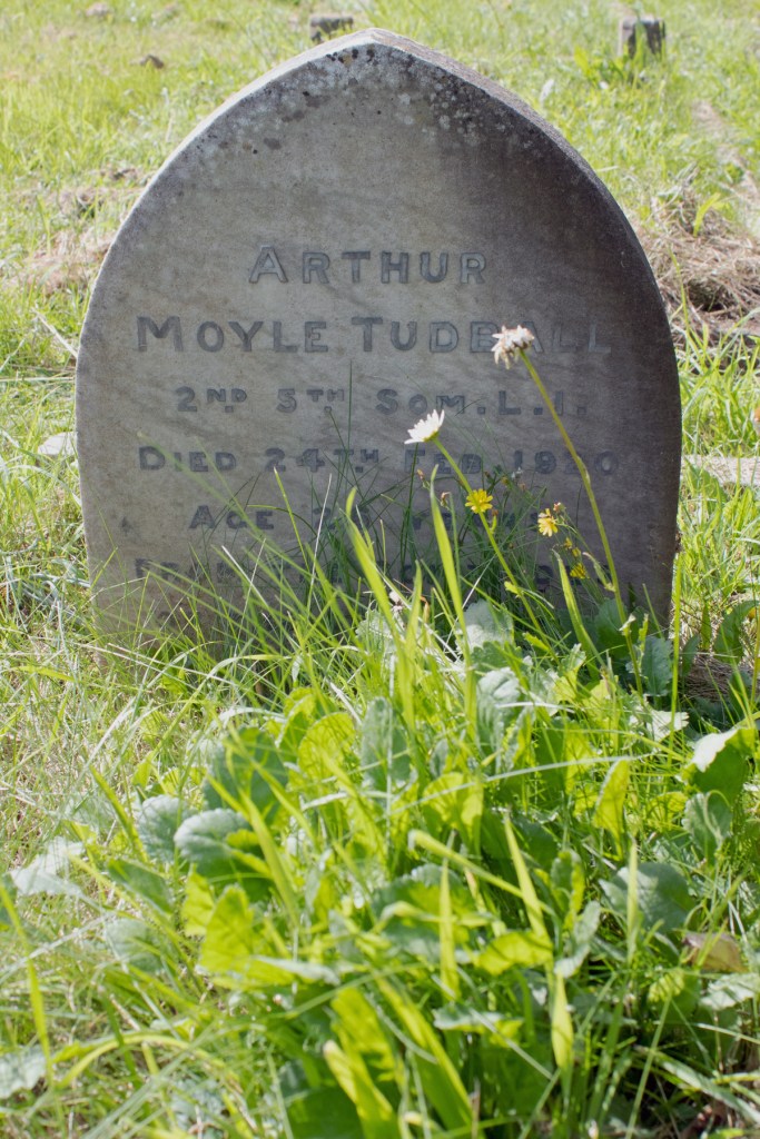 Arthur Moyle Tudball was buried in Minehead Cemetery, not far from where his grieving family lived. His modest headstone was donated by his army colleagues.