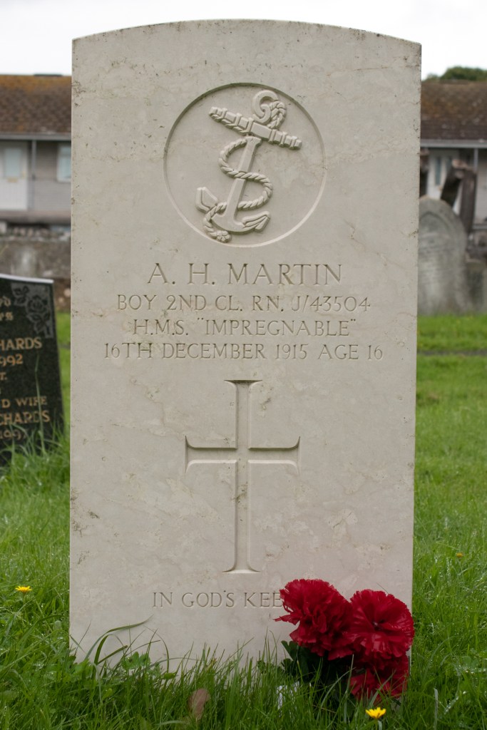 Tragically, Boy Martin’s time in the Royal Navy was not to be a long one. Billeted in tightly-packed barracks, with new recruits from across the country, he quickly fell ill. Contracting pneumonia, he was admitted to the Royal Naval Hospital in Plymouth. The condition was to get the better of him, and he passed away on 16th December 1915, at the age of just 16 years old.