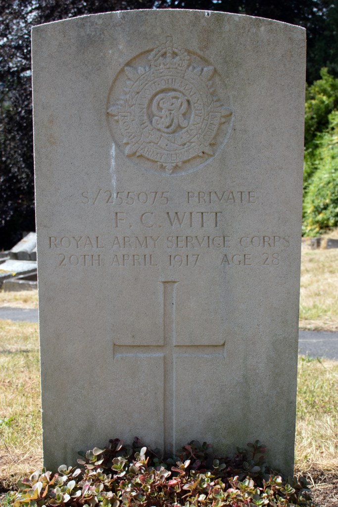 When war was declared, Frederick was called upon to play his part. Full details of his service are unclear, but he had joined the Royal Army Service Corps by the start of 1917. Private Witt was attached to the Reserve Supply Personal Depot in Bath, Somerset, but, soon after enlisting, he contracted pneumonia.