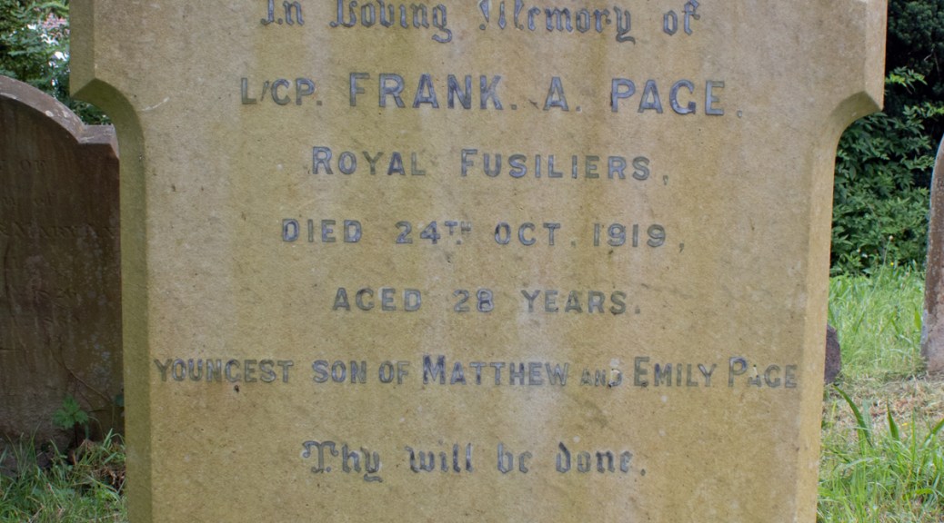 Matthew passed away in the spring of 1917, and it appears that Frank was demobbed at some point after the Armistice. By the autumn of 1919, he was back in Sussex, living with his now widowed mother. His time in the army seems to have impacted on Frank’s health by this point, and he died ‘from disease’ on 24th October 1919. He was 28 years of age.