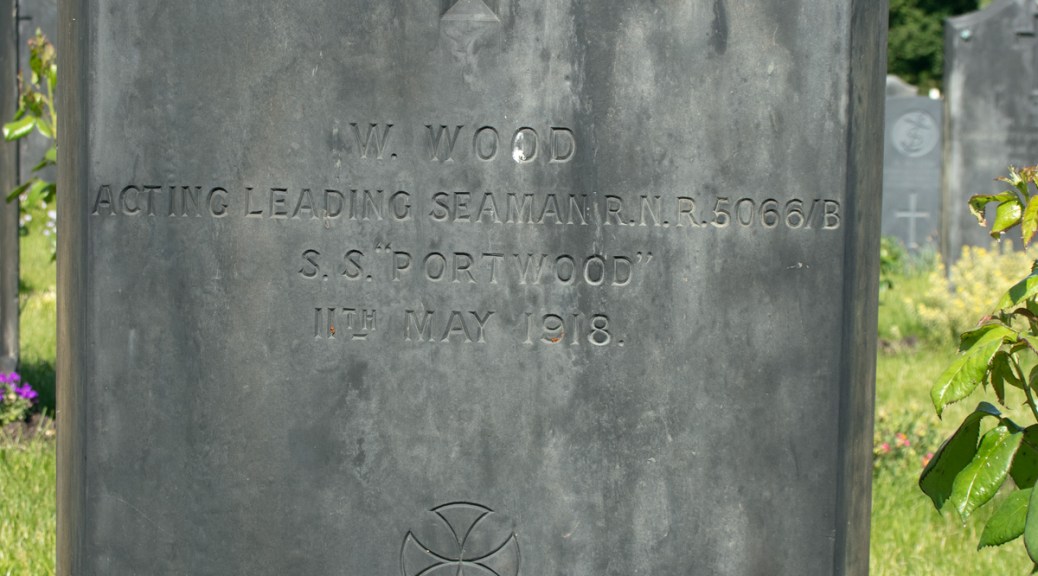 The life of William Wood, who is buried in Woodlands Cemetery in Gillingham, Kent, is a challenge to piece together. His headstone confirms that he held the rank of Acting Leading Seaman in the Royal Naval Reserve, and that he was assigned to SS Portwood at the time of his death.