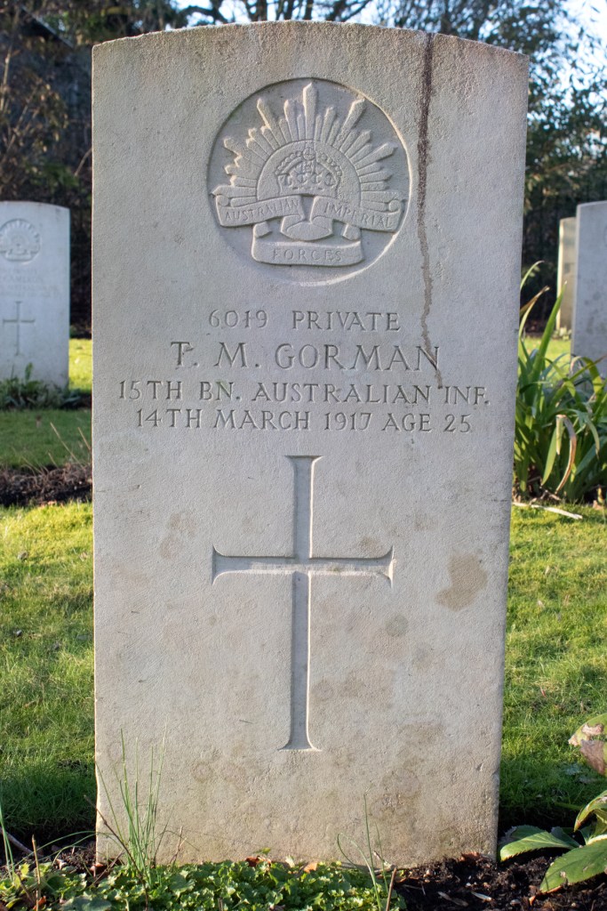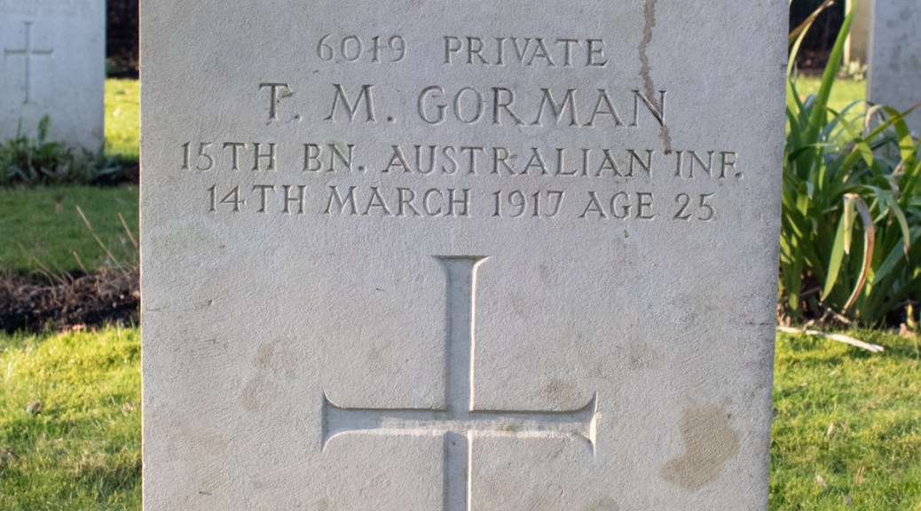 Thomas Michael Gorman was born on 6th April 1887 and was the seventh of ten children. Both of his parents – Patrick and Mary Gorman – were Irish, and had followed Patrick’s work around the world as an army Quartermaster Serjeant. By the time Thomas came along, the family had settled in Australia, and he was born in Brisbane.