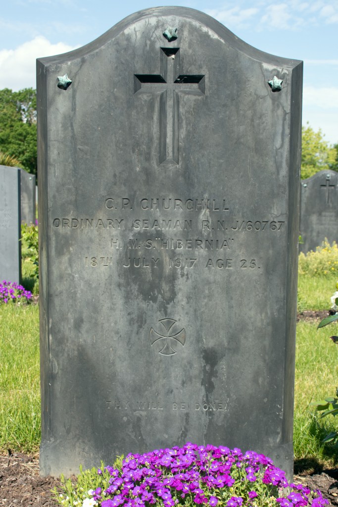 The body of Charles Percival Churchill was laid to rest in Woodlands Cemetery, Gillingham, Kent, not far from the naval base he had so briefly called home.