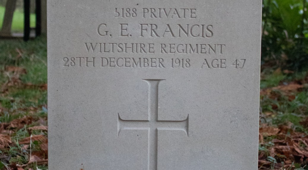 The only other record for Private Francis’ time in the army, is a document relating to his passing. This confirms that he died on 28th December 1918 in camp at Norton Bavant, to the east of Warminster, Wiltshire: he was 47 years of age.