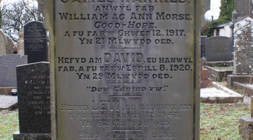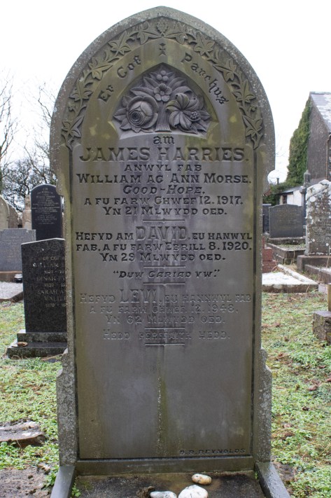 James Harries Morse died of disease on 12th February 1917: he was just 21 years of age. His body was taken back to Pembrokeshire for burial, and he was laid to rest in the family plot in Pencaer (Harmony) Baptist Burial Ground, not far from his parents’ home.
