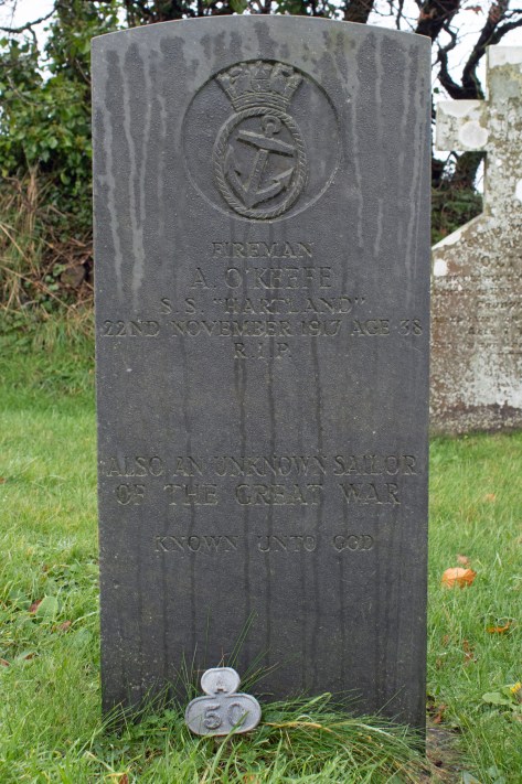 O’KEEFE Fireman Arthur. SS “Hartland.” 22nd Nov., 1917. Age 38. Son of John and Mary O’Keefe of Cork.