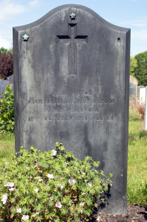 The body of Harry Cooper Vince was laid to rest in the military section of Woodlands Cemetery, Gillingham, not far from the naval base he had called home.