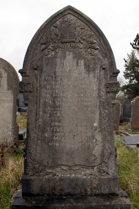 In the Hermon Baptist Burial Ground in Fishguard, Pembrokeshire is a headstone dedicated to Maggie and Willie John. The inscription reads: “In memory of Maggie, the beloved wife of Willie John, builder. Daughter of JR & E Owen of High Street Fishguard, who fell asleep in Jesus May 27, 1911, aged 26 years. A faithful member & organist of Hermon Church… Also of the above Willie John, who fell asleep in Jesus May 26, 1917, age 34 years.”
