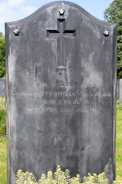 Alive, but severely concussed, Stoker Petty Officer Weller was quickly taken to a local hospital. He was operated on, but his injuries were too severe. Henry passed away on 16th April 1918: he was 41 years of age.