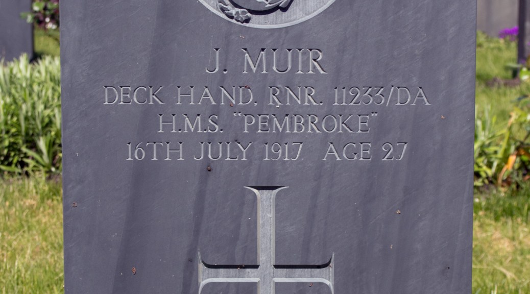 Deck Hand Muir initially served on the depot ship HMS Zaria, before bring transferred to the cruiser HMS Brilliant. By the spring of 1917, he was stationed at HMS Pembroke, the Royal Naval Dockyard in Chatham, Kent.