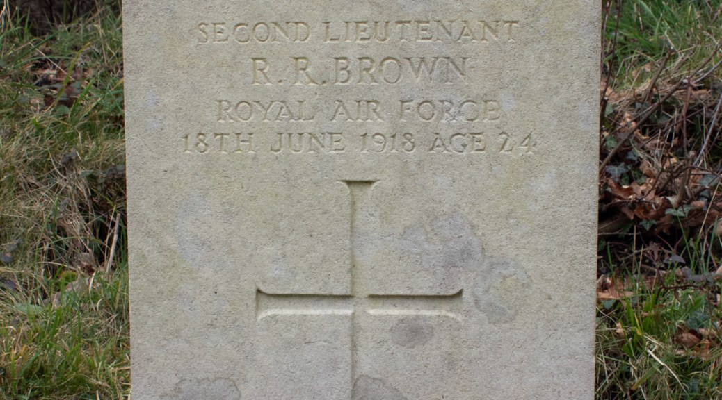 In the churchyard of St Mary’s, East Boldre, Hampshire, is a headstone dedicated to Second Lieutenant RR Brown of the Royal Air Force, who died on the 18th June 1918, at the age of 24.