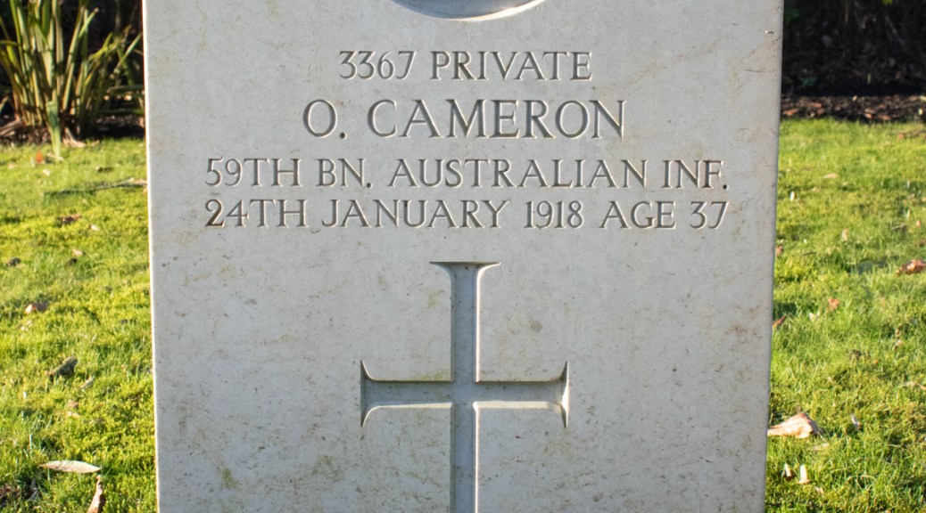 At the start of 1918, Private Cameron’s health was suffering again. He was admitted to the No. 3 New Zealand General Hospital in Codford, Wiltshire, suffering from nephritis. Ultimately, the condition was to prove fatal: Oscar passed away at 4:45pm on 24th January 1918, aged 40.