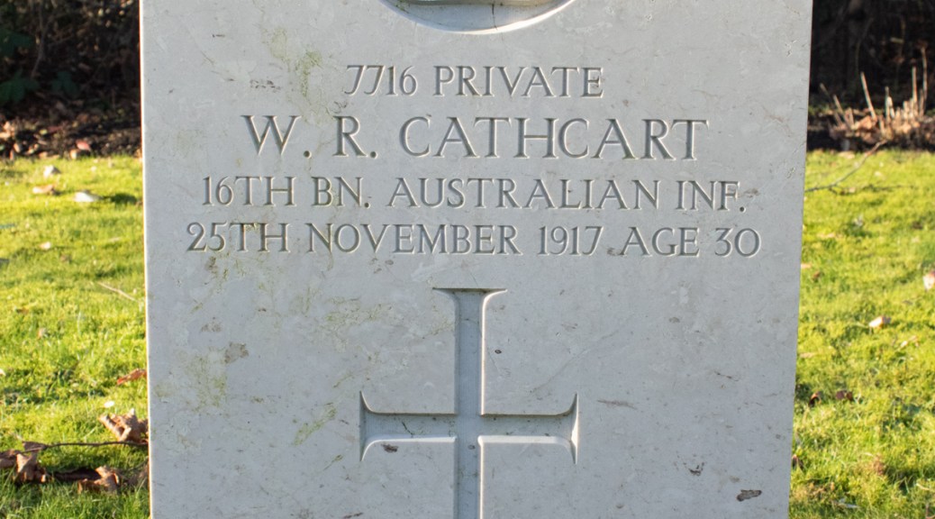 The body of William Rea Cathcart was laid to rest in the ANZAC extension to the graveyard of St Mary’s Church, Codford, not far from the hospital in which he had been treated.