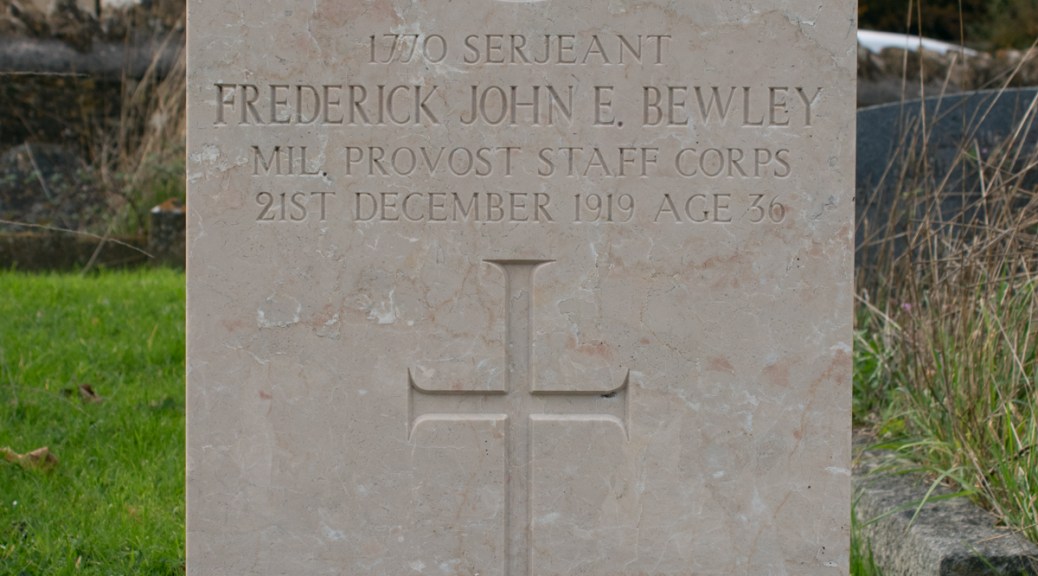 Frederick John Edwin Bewley was born in Calne, Wiltshire, on 10th May 1882. Noticeably absent from the 1891 and 1901 census records, his parents were Chelsea pensioner John Bewley, and his wife, Annie.