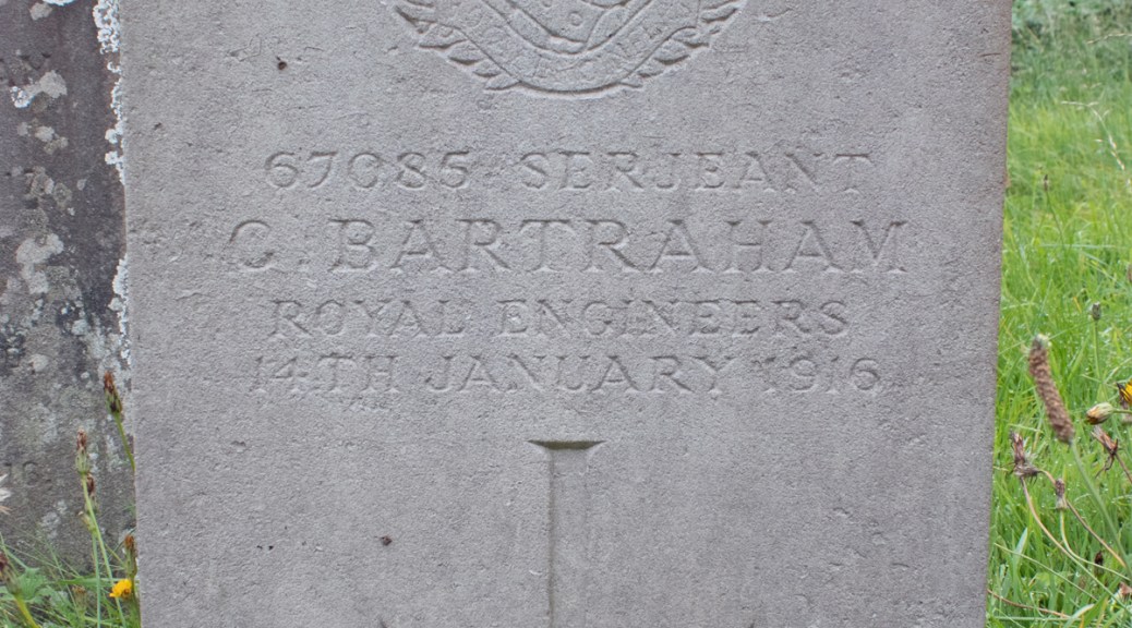 By the start of 1916, Serjeant Bartraham was back in Britain, primarily because of ill health. He had come down with nephritis, or inflamed kidneys. Admitted to hospital in South London, he died from the condition on 14th January 1916, at the age of 47 years old.