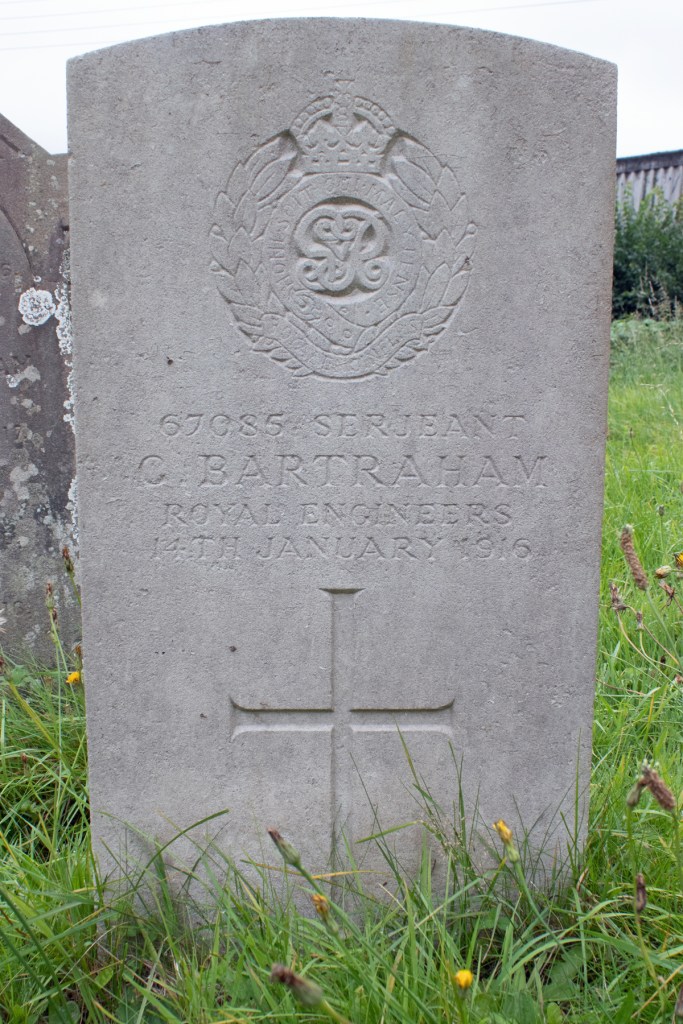 George Jr had found work as a tailor, and was apprenticed to a Charles Taylor, who lived in the village. That bigger and better life was niggling away, however, and, on 11th June 1888, he enlisted in the Royal Engineers. His service records show that he was 5ft 5.5ins (1.66m) tall, with black hair, dark eyes and a fair complexion. Sapper Bartraham was also noted as having a scar on his left foot.
