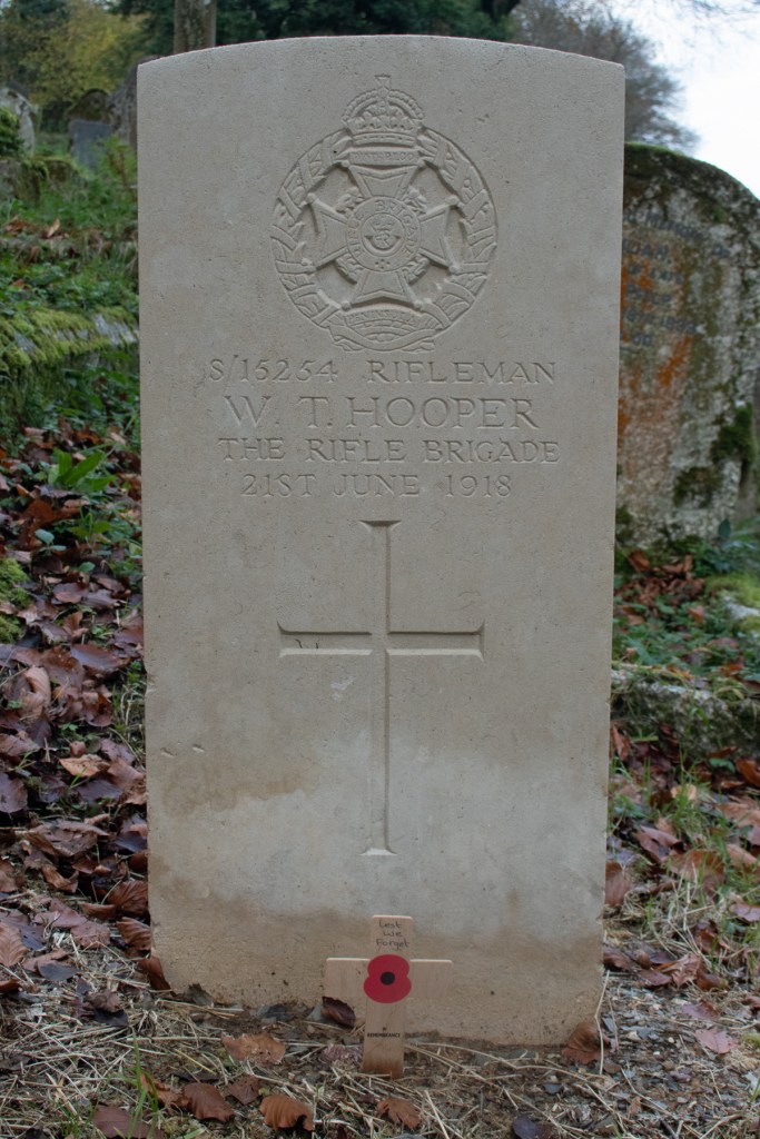 Rifleman Hooper’s service documents become a little confused at this point. One record suggests that he was discharged from the army on 2nd January 1918 as being no longer medically fit for duty, while a second entry confirms that he passed away while on leave pending discharge.