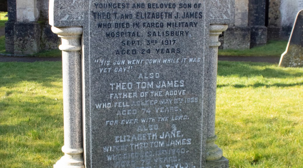 The only other identified document relating to Gunner James confirms that he was admitted to the Fargo Military Hospital at Larkhill, Wiltshire. The cause of his admission is unclear, but he passed away while there on 3rd September 1917. He was just 24 years of age.