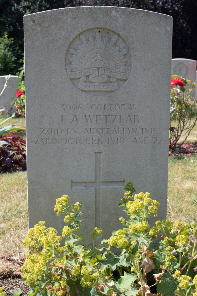 During his recovery, Corporal Wetzlar contracted influenza and pneumonia and, tragically, given what he had been through, these were to prove fatal. John died on 23rd October 1918: he was 22 years of age.