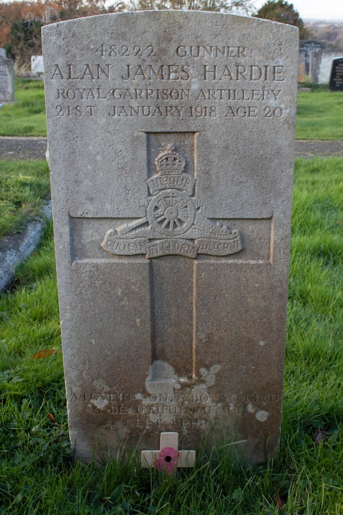 Gunner Hardie had been admitted to the 5th Northern General Hospital following his injury. He seemed to be improving, but developed pneumonia and the lung condition was to take his life. He passed away on 21st January 1918, at the age of just 20 years old.