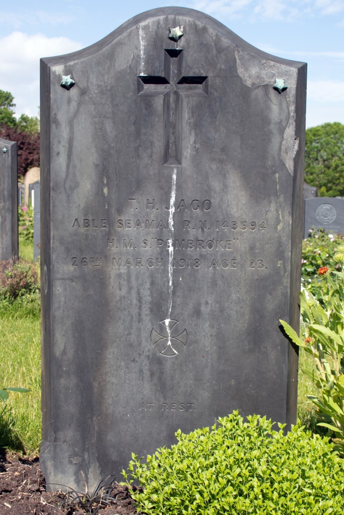 In February 1918, Able Seaman Jago returned to the Royal Naval Dockyard in Chatham one last time. He was unwell by this point, and was admitted to the the town’s Royal Naval Hospital for an operation on his mouth. Thomas was suffering from carcinoma of the tongue, and the condition was to prove fatal. He passed away on 26th March 1918, at the age of 45 years old.
