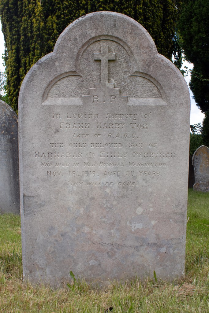 The body of Frank Harry Tom Perryman was taken back to Devon for burial. He was laid to rest in Axminster Cemetery, on the outskirts of the town that had been his childhood home.