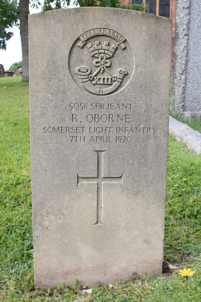 Robert Oborne was 39 years old when he died. He was laid to rest in the grounds of St Mary’s Church in his home village, Bishops Lydeard.