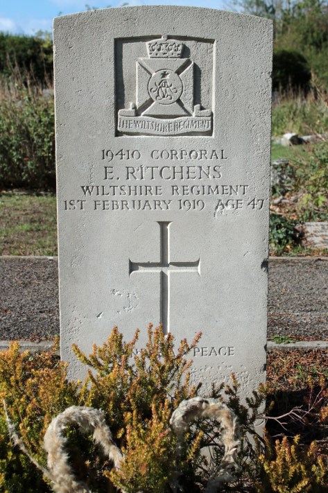 RITCHENS – On February 1st, at No. 1, Australian Hospital, Sutton Veny, Corporal Ernest Ritchens, of the Labour Corps, and formally of the Wilts Regiment, resident of Hilperton…