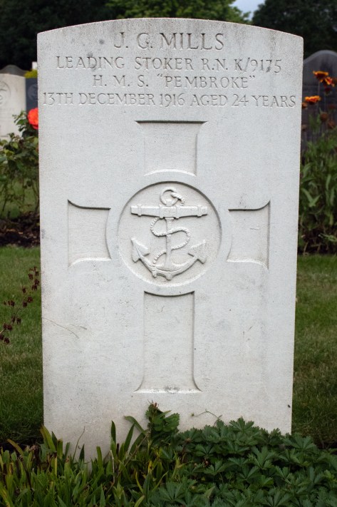 The body of James George Mills was laid to rest in Woodlands Cemetery, Gillingham, Kent, not far from the naval base he had known so well.