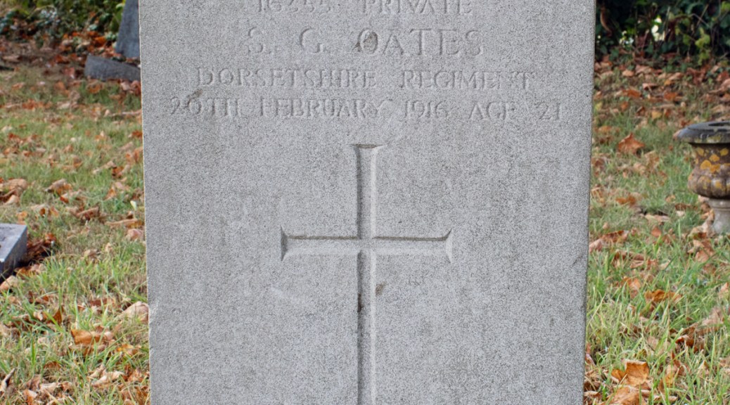 Private Oates was assigned to the 7th (Reserve) Battalion and sent to a training camp near Wool, Dorset. While there, however, he caught pneumonia, and was admitted to a military hospital in the village. The condition was to prove fatal: he passed away on 20th February 1916, aged just 21 years old.