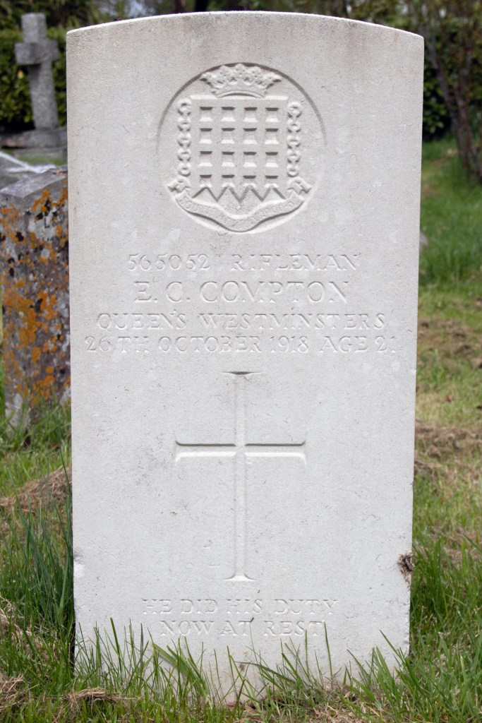 On 24th September 1917, Rifleman Compton was medically discharged from the army, after three years and fifteen days’ service. The cause for this isn’t documented, but there is no evidence that he was wounded, so it is likely to have been an illness of some description.