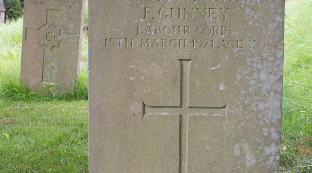 The funeral took place in All Saints’ Churchyard, Dulverton… of Mr F Gunney, only don of Mrs Gunney… who died on Tuesday last. Deceased served three years in France, and has been in failing health practically ever since demobilisation, although the end came rather suddenly.