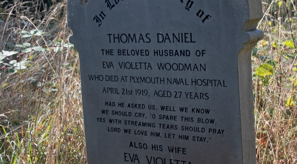 On 8th March 1919, while on leave, Thomas married Eva Paget at St Barnabas’ Church in Warmley. She was the same age as Thomas and daughter of a sexton. Tragedy was to strike the couple, however as, within a matter of weeks, the young groom contracted meningitis. He passed away at the Royal Naval Hospital in Plymouth on 21st April 1919. He was just 27 years of age.