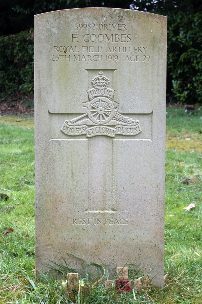 Driver Coombes’ medical report confirmed that the condition was fully the result of his army service, and treatment at a sanatorium was recommended. His last day with the Royal Field Artillery was 7th May 1917: his career had lasted 7 years 202 days.