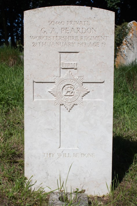 Private Peardon served in France, and was likely involved in the Battles of the Somme and Lys in the spring of 1918. His pension ledger records note that, on 27th May, he was recorded as ‘missing’: this was the day of a massive German gas and artillery bombardment and, in the confusion that followed, it appears that Garfield was identified as a potential casualty.