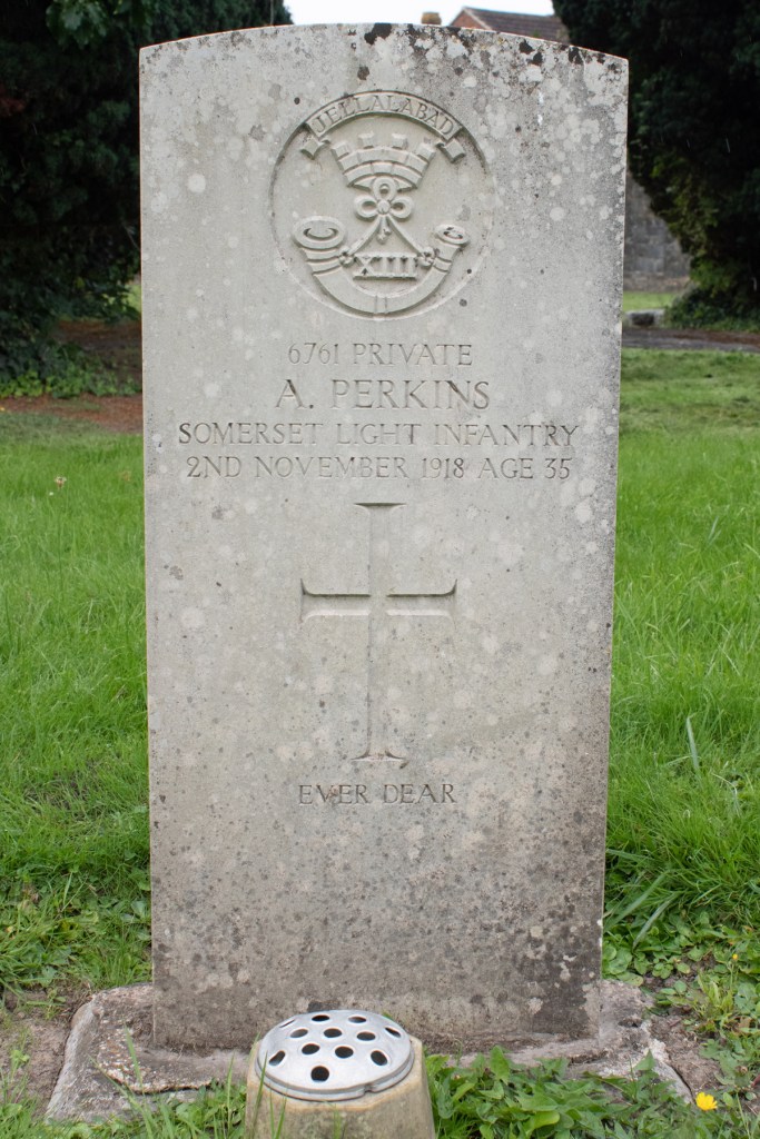 Arthur Perkins died through causes unknown on 2nd November 1918: he was 35 years of age. He was laid to rest in the cemetery of his home town, Highbridge.