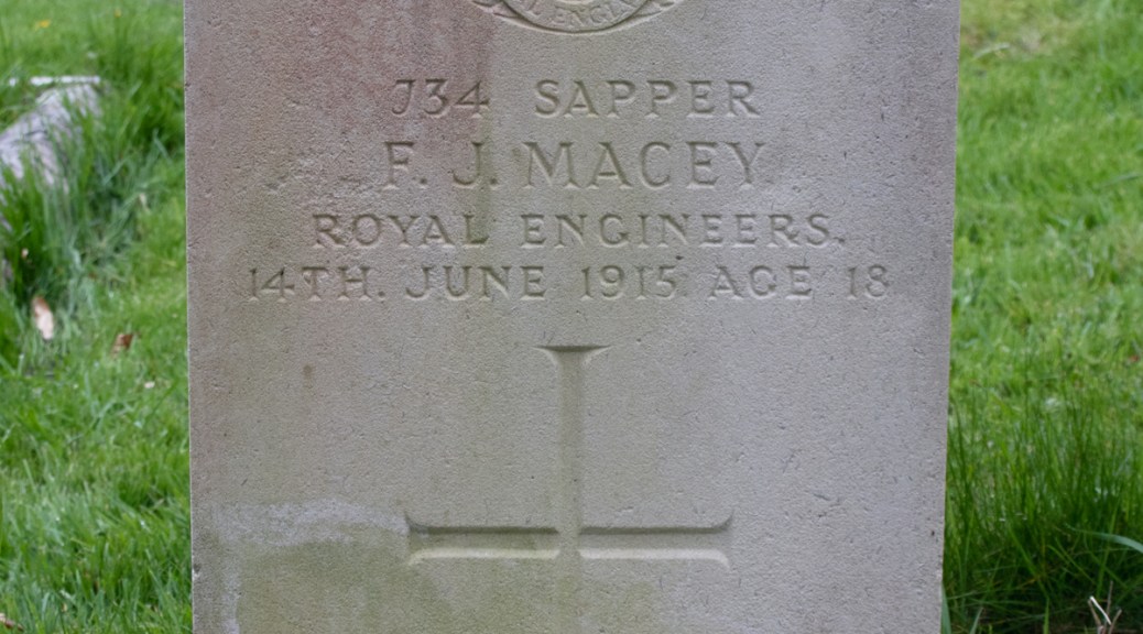 When war broke out, Fred stepped up to play his part. He enlisted in the Royal Engineers, and was assigned to the 503rd Field Company. Full details of his military service are lost to time, so it is not possible to identify whether Sapper Macey served overseas – Malta, where part of the regiment were based – or on home soil – in and around Ipswich, Suffolk.