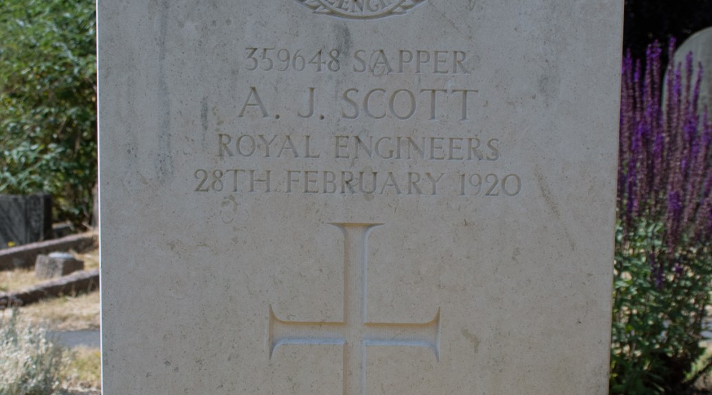 Sapper Scott’s health continued to suffer, however. In May 1919, he was admitted to a camp hospital, suffering from appendicitis. He was operated on, and medically evacuated to Britain for further treatment and recuperation. Abraham was admitted to the Bath War Hospital on 25th July 1919, and remained there for four months.