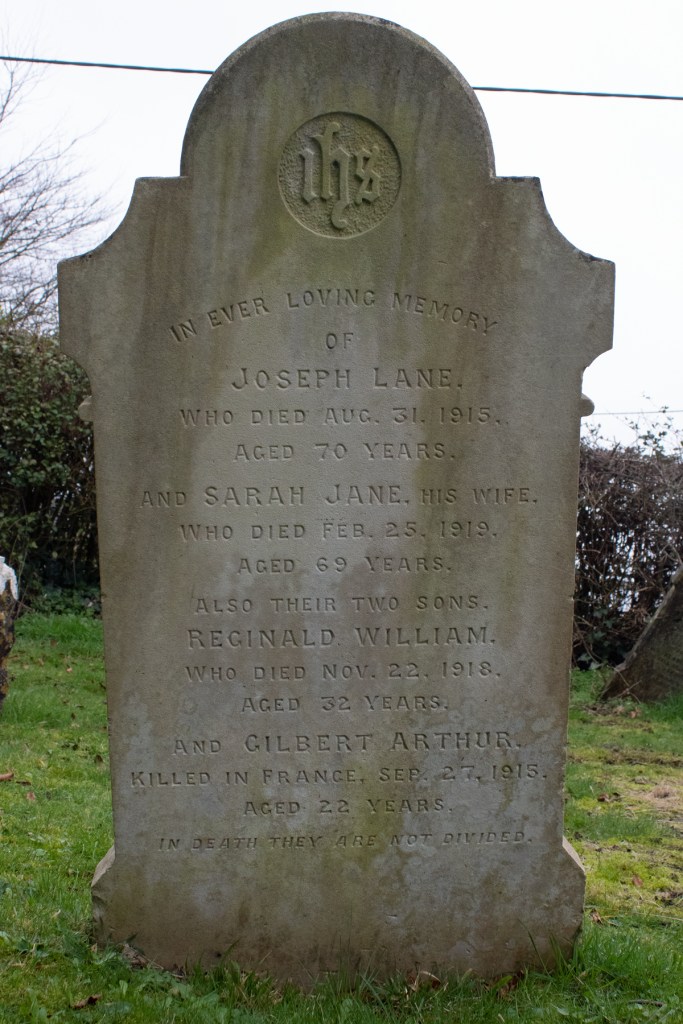 Reginald’s mother, Sarah, however, only lived for another couple of months. She passed away on 25th February 1919, at the age of 69 years old. She was reunited with her husband and son in St Mary Magdalene Churchyard, the family headstone commemorating Private Gilbert Lane as well.