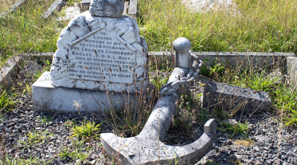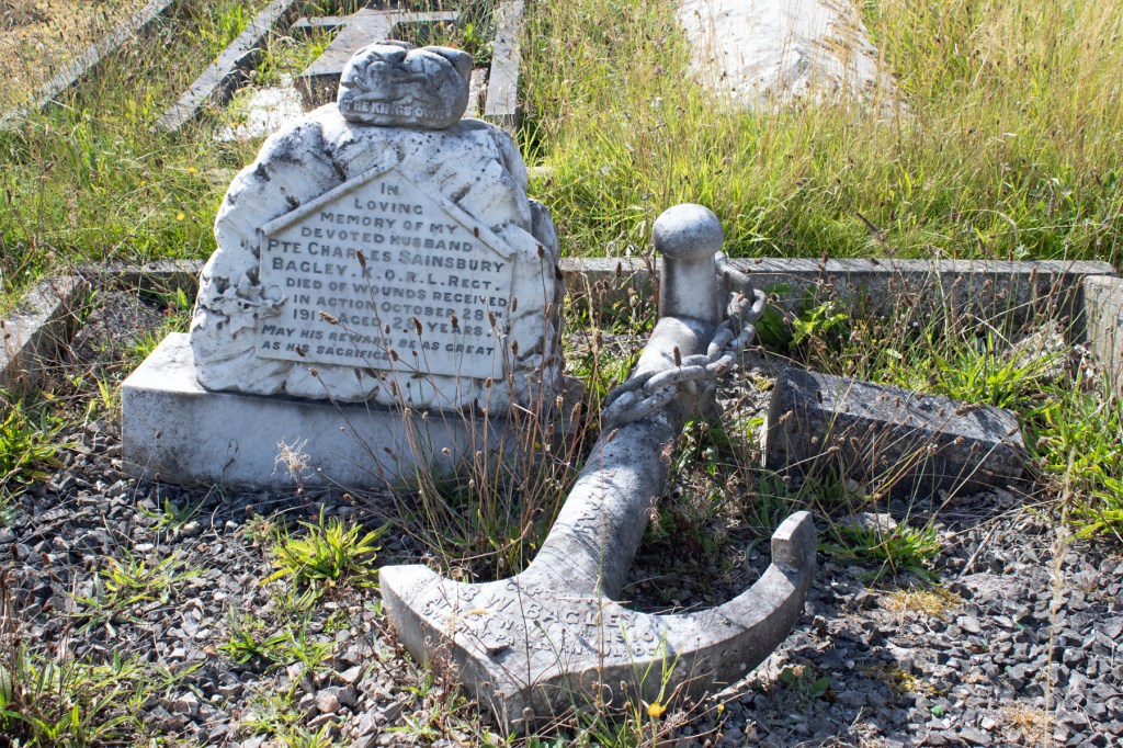 The body of Charles Sainsbury Bagley was taken back to Somerset for burial. He was laid to rest in the family plot in Minehead Cemetery, reunited with his parents, Jane having died at the beginning of 1917. The seafaring headstone paid homage to his father’s maritime service.